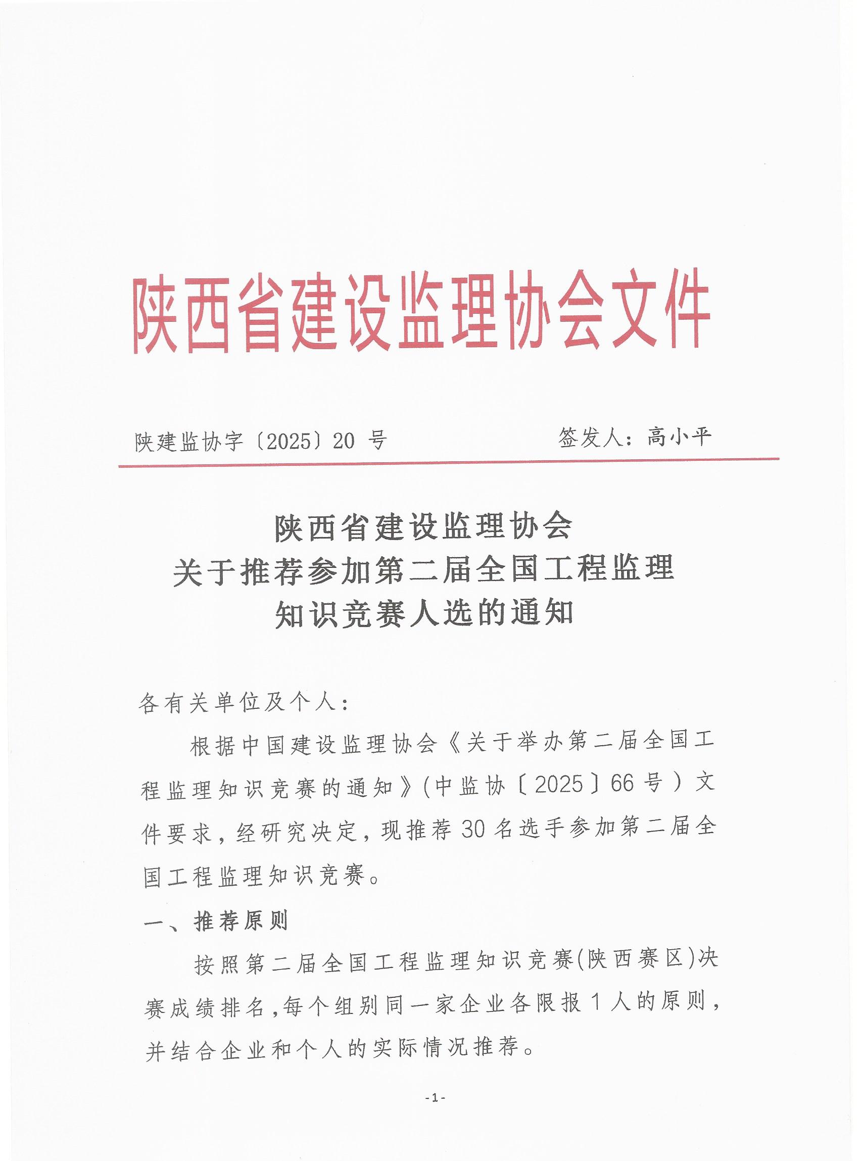关于推荐参加第二届全国工程监理知识竞赛人选的通知