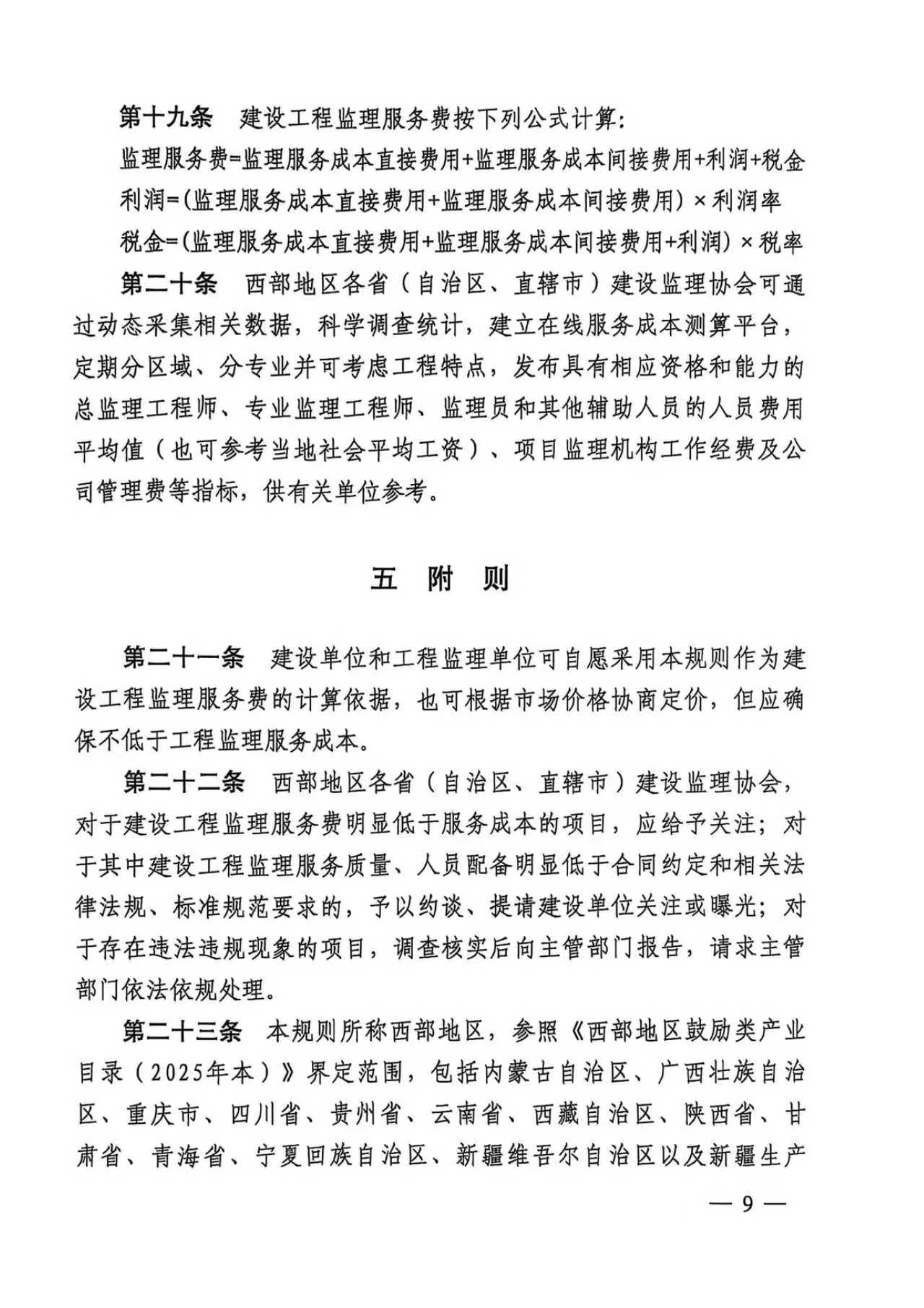 关于联合发布《建设工程监理服务成本费用测算规则》的通知