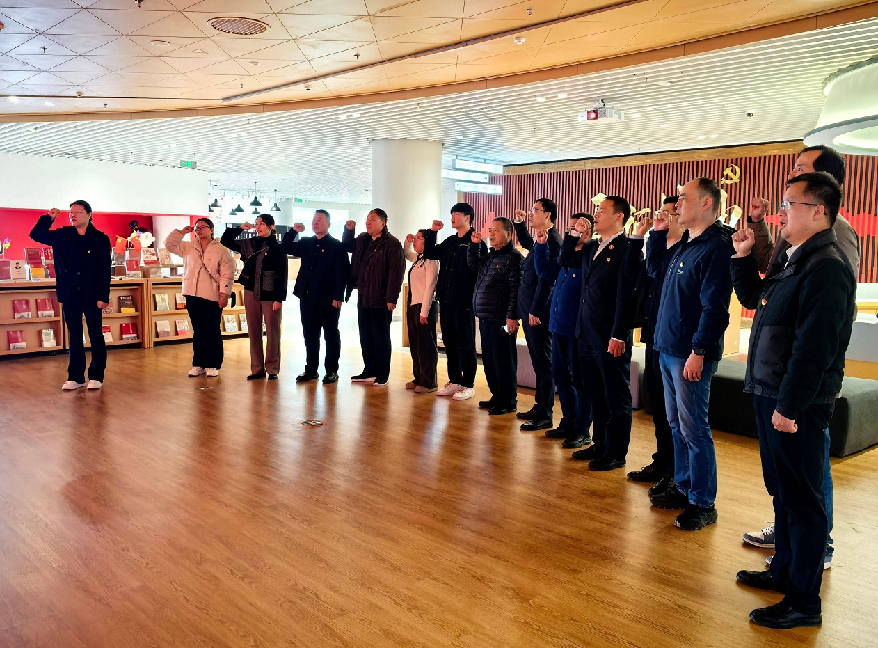 随后,全体党员面向党旗庄严列队,举起右拳重温入党誓词,铿锵有力的誓言回荡在书院上空,进一步坚定了“不忘初心、牢记使命”的信念决心。