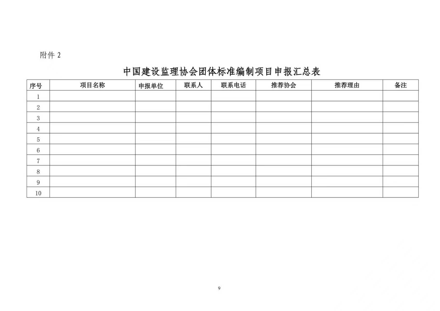 附件:1. 中国建设监理协会团体标准编制项目申报书