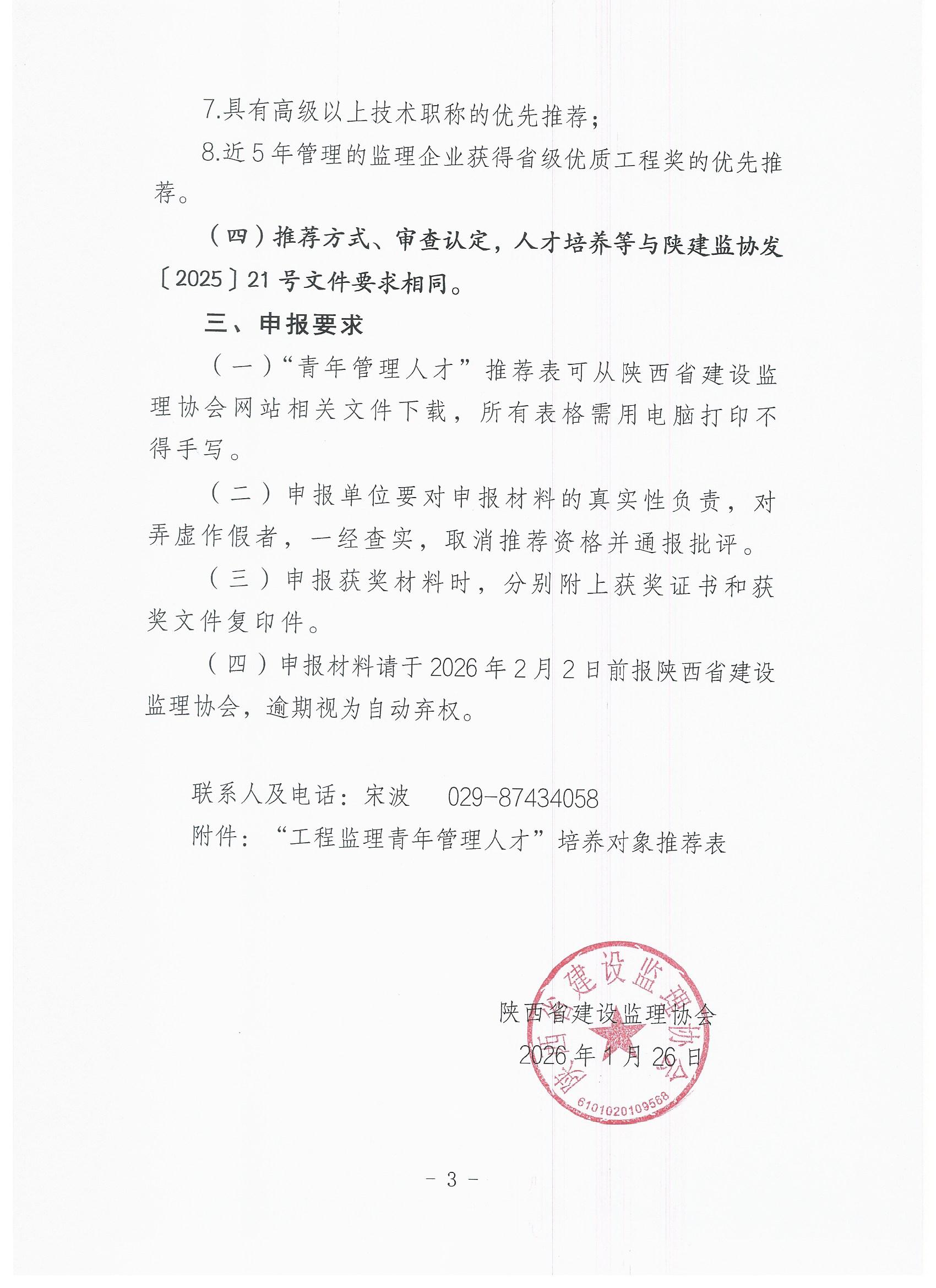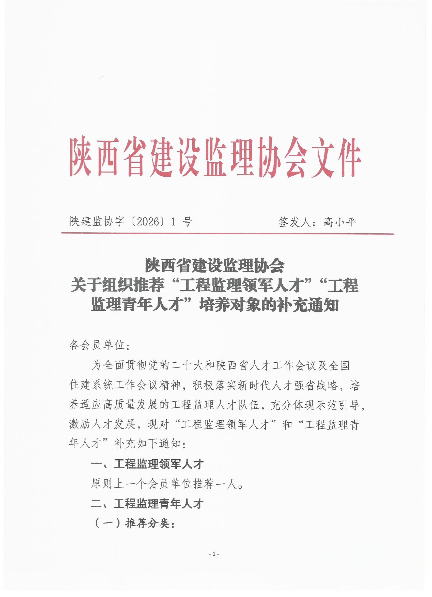 关于组织推荐“工程监理领军人才”“工程监理青年人才”培养对象的补充通知