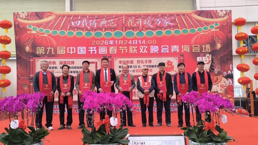 本次书画春晚青海会场由中国梦组委会、人人艺术网、中国书画春节联欢晚会组委会等单位主办,西宁万佳投资有限公司、陕西省甘肃商会、陕西中兴国防工业工程咨询有限公司青海分公司等单位联合承办,青海电视台、青海日报、人民网青海频道、新华网青海频道等权威媒体全程宣传报道。活动立足青海独特的自然禀赋与文化底蕴,以书画艺术为载体,勾勒昆仑神韵,书写青海风骨,让传统艺术之美在三江源头绽放新彩。