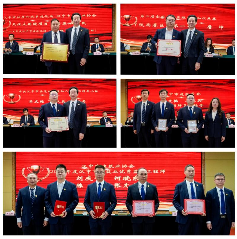 表彰环节气氛热烈,掌声雷动。会议首先通报了公司及个人斩获的14项外部荣誉,涵盖行业认证、地方表彰、个人殊荣三大类。其中,公司先后获评 “陕西省工程监理数智化应用优秀企业”“汉中市建筑业先进企业”“汉台区科学研究与技术服务业优秀企业” 等6项集体荣誉,监理的天汉大剧院项目成功斩获市级最高优质工程“天汉杯”奖;个人层面,总经理魏涛获评 “汉中市建筑业优秀企业家”,副总经理罗银辉获评 “陕西省建设监理协会先进工作者”,技术顾问侯文彬获评“汉中市建筑业优秀总工程师”,齐文韬同志被中共汉中市委授予“天汉英才”称号,詹坤同志在第二届全国工程监理行业知识竞赛陕西赛区斩获第一名并晋级全国决赛,刘庆华等4人获评“汉中市建筑业优秀监理工程师”,齐文韬、谷红兵获评“优秀调解员”。每一项荣誉都彰显了“汉中监理” 的专业实力与行业口碑,是全体员工攻坚克难的生动写照。