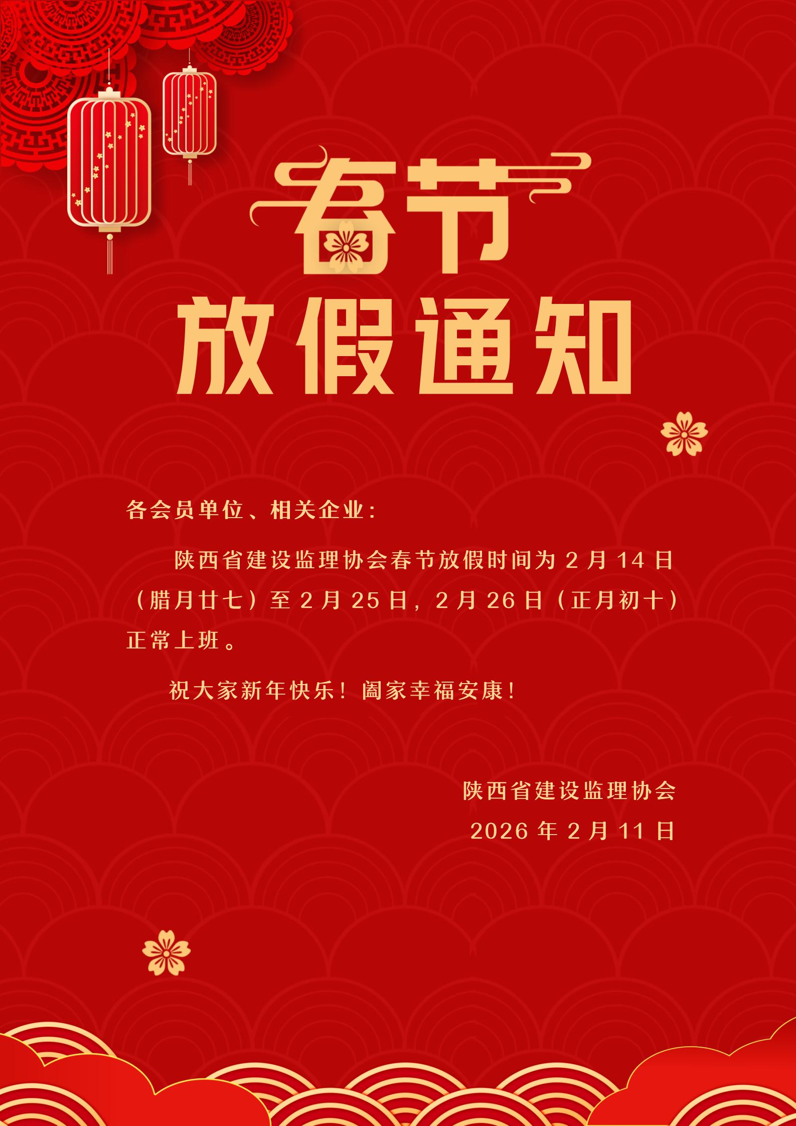 2026年春节放假通知