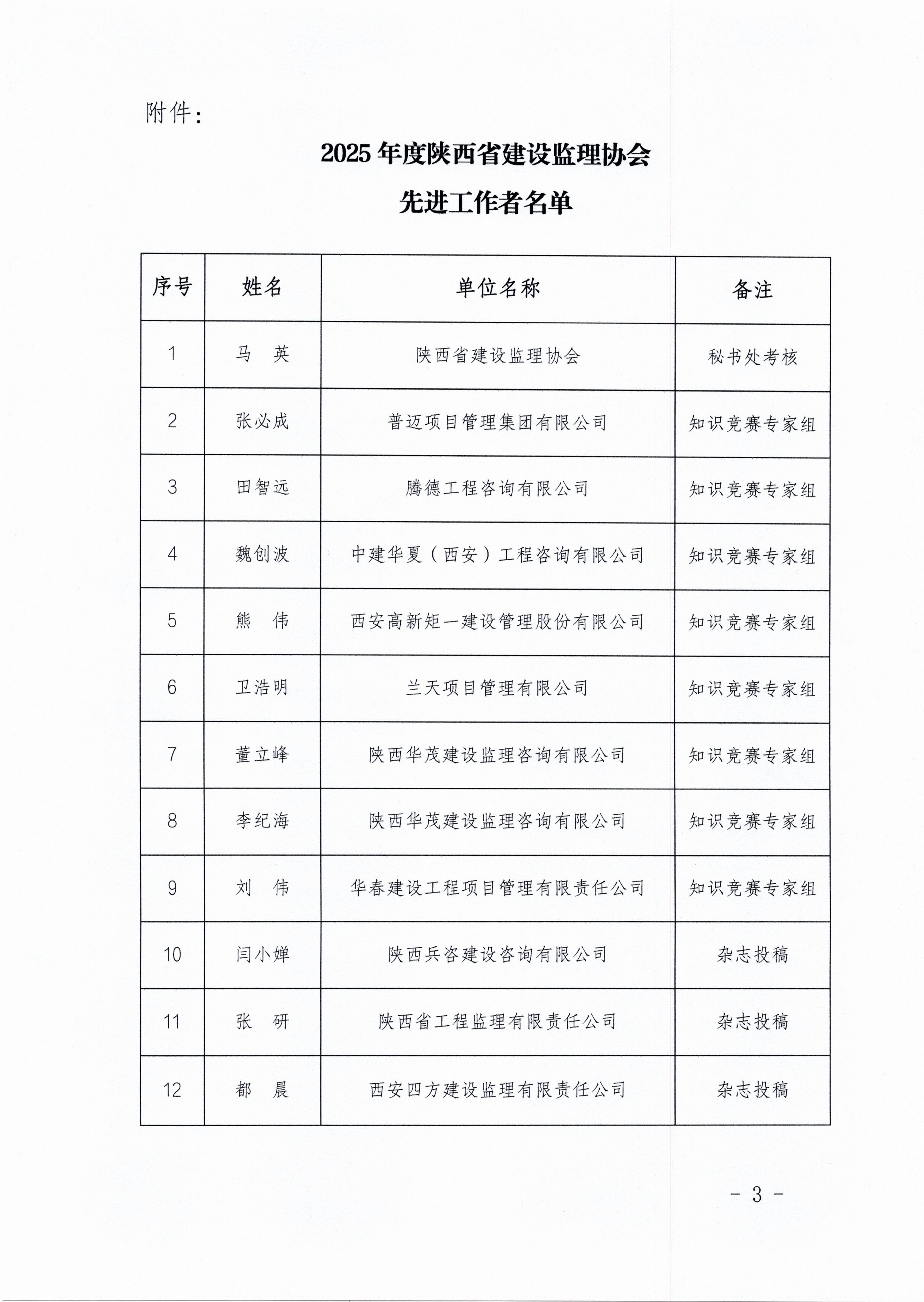 关于表彰2025年度陕西省建设监理协会先进工作者的公示