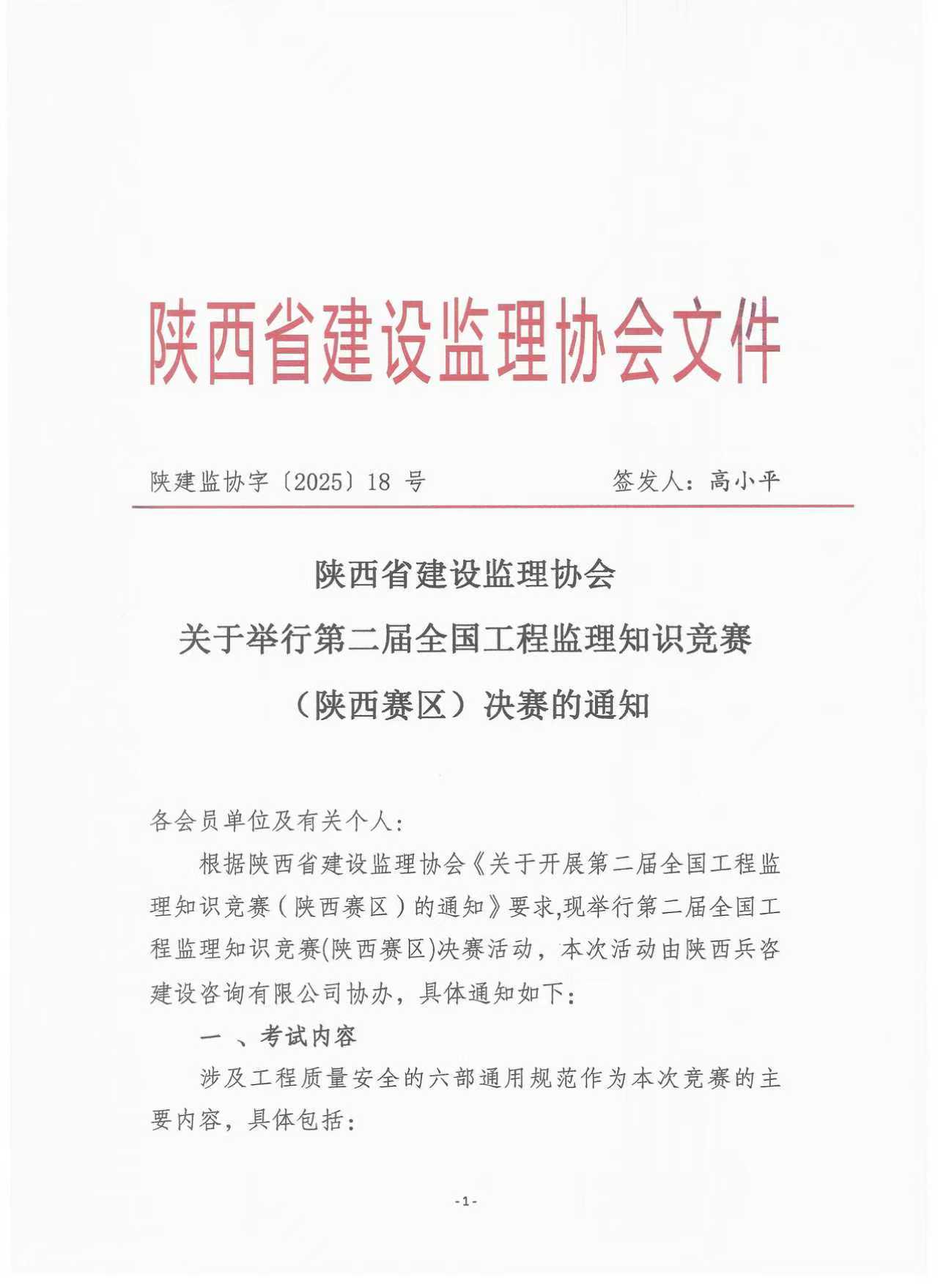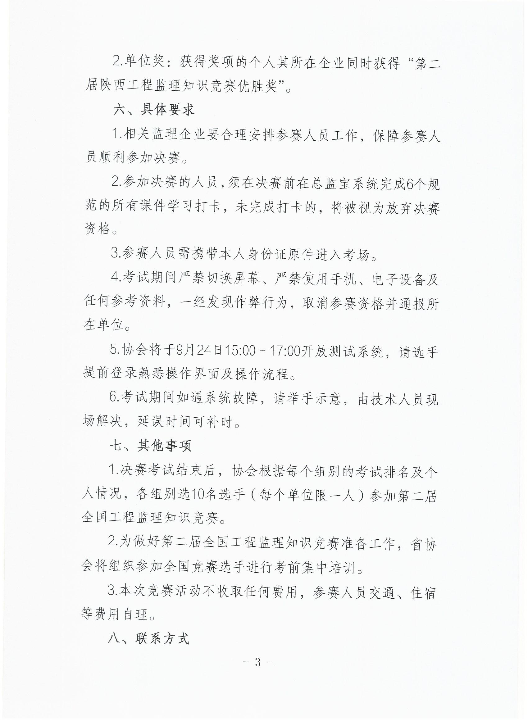 关于举行第二届全国工程监理知识竞赛(陕西赛区)决赛的通知