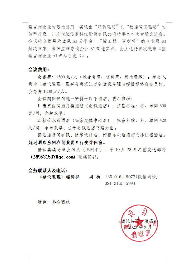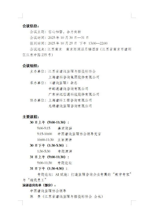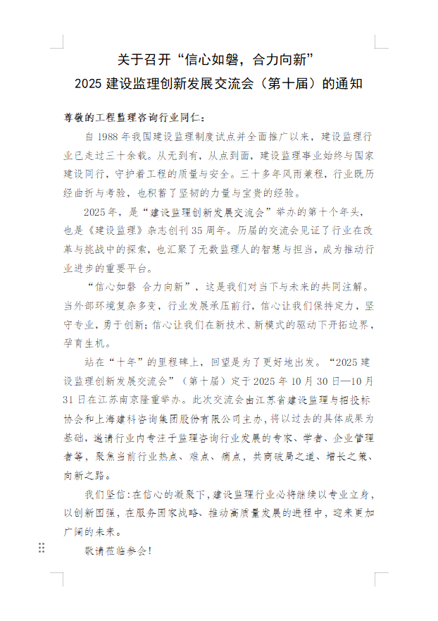 关于召开“信心如磐,合力向新” 2025建设监理创新发展交流会(第十届)的通知