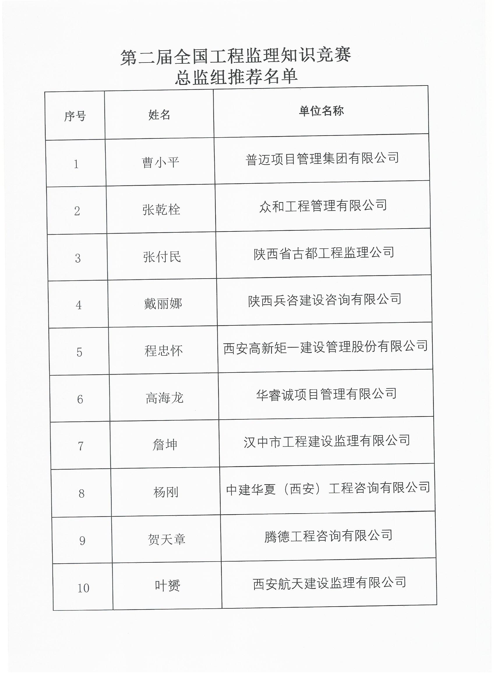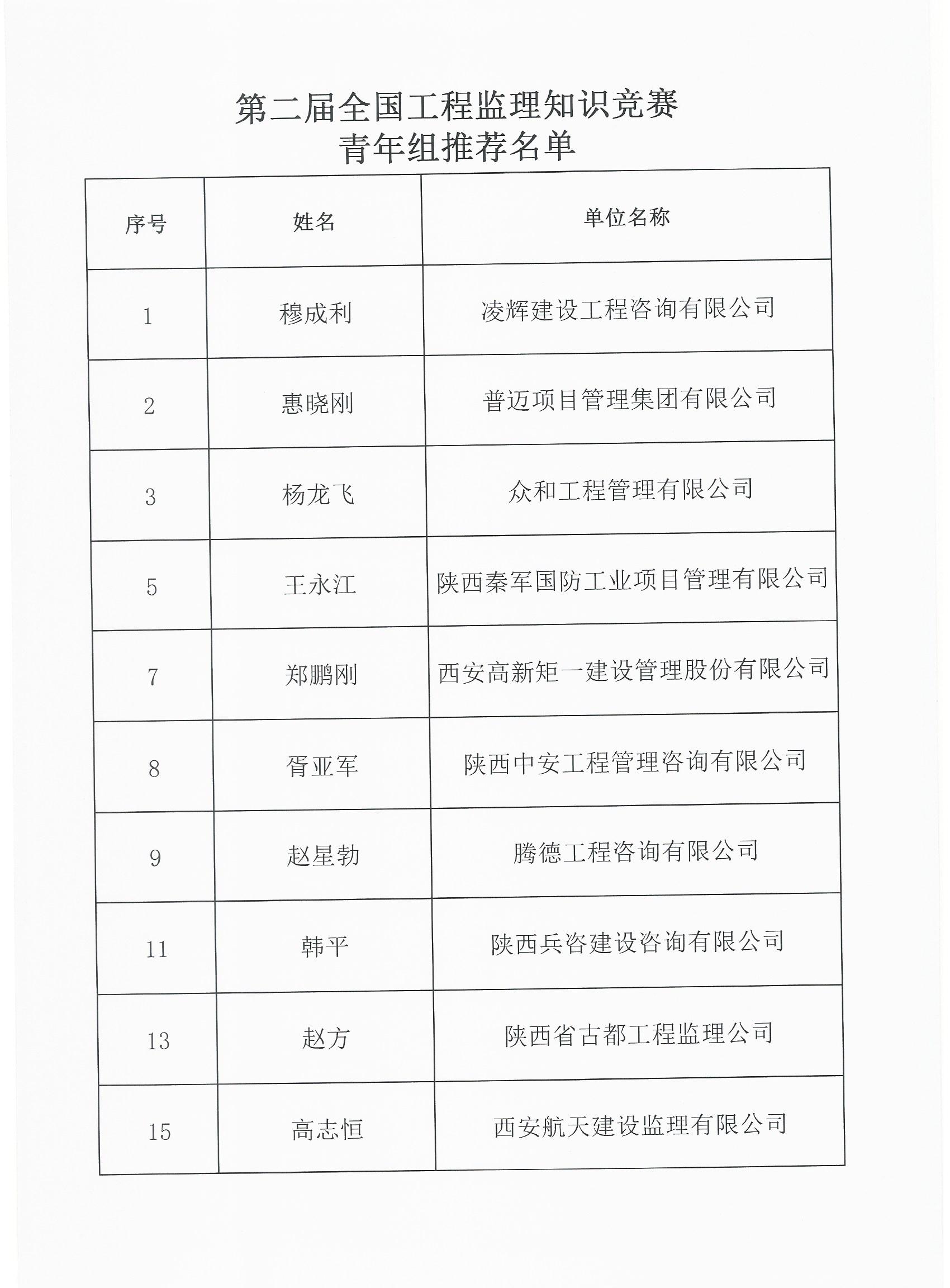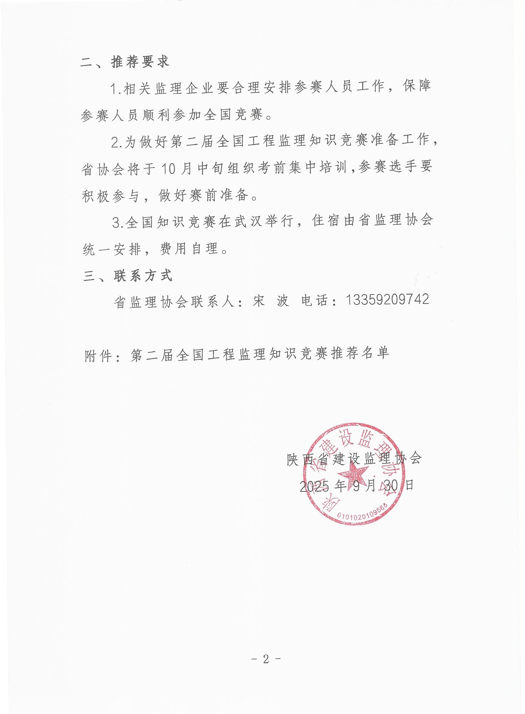 关于推荐参加第二届全国工程监理知识竞赛人选的通知