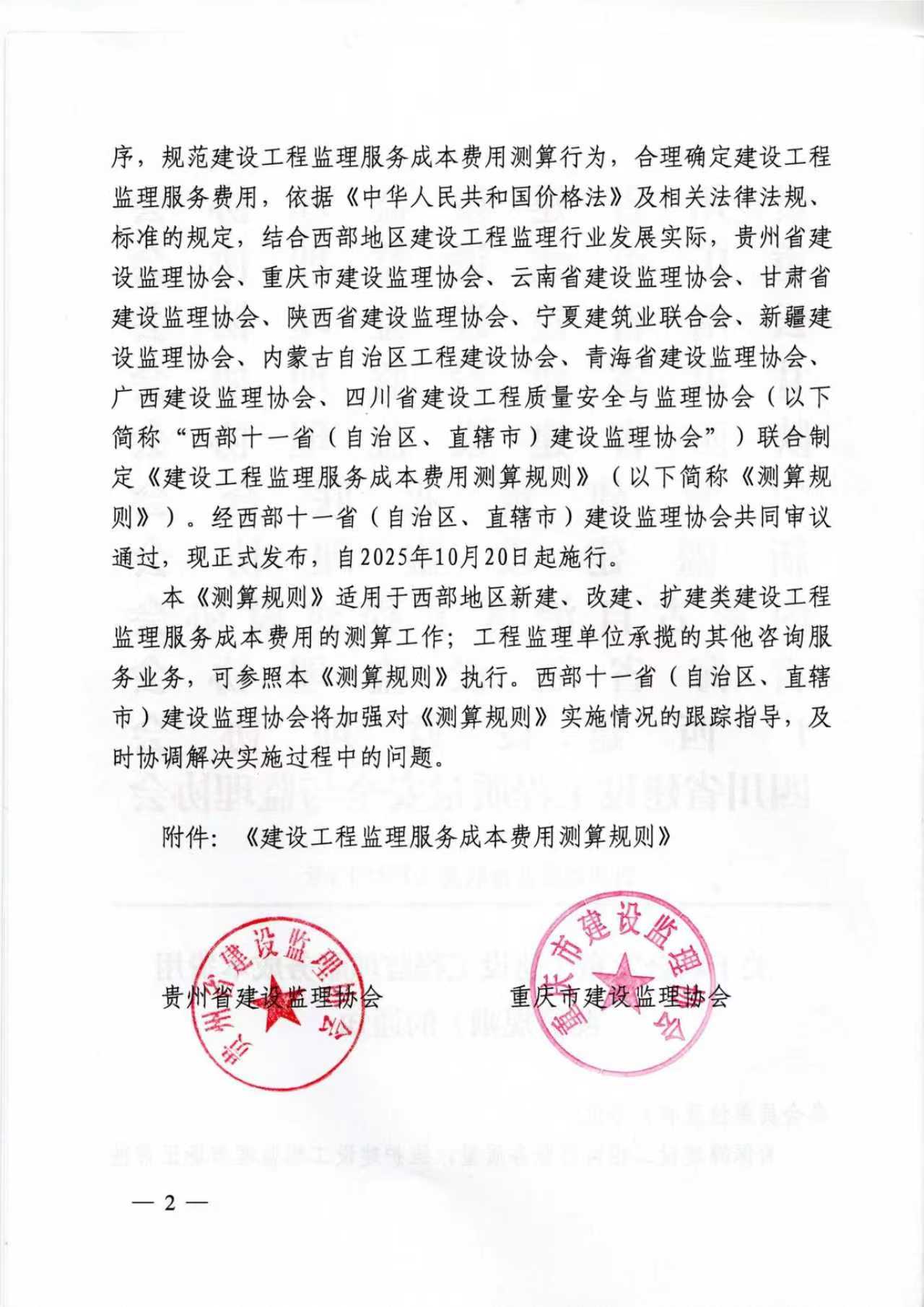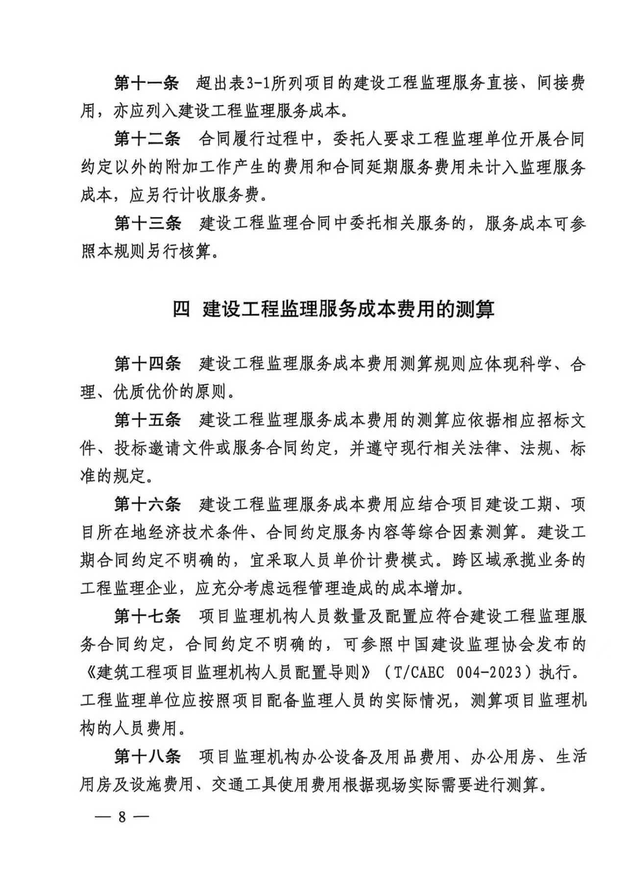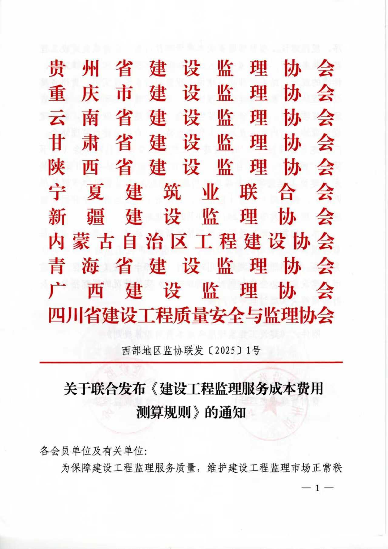 关于联合发布《建设工程监理服务成本费用测算规则》的通知