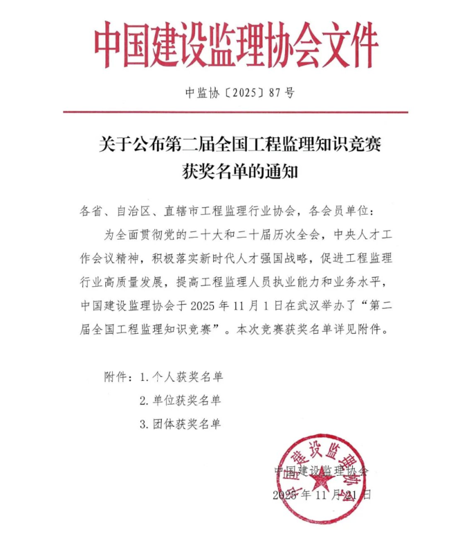 关于公布第二届全国工程监理知识竞赛获奖名单的通知