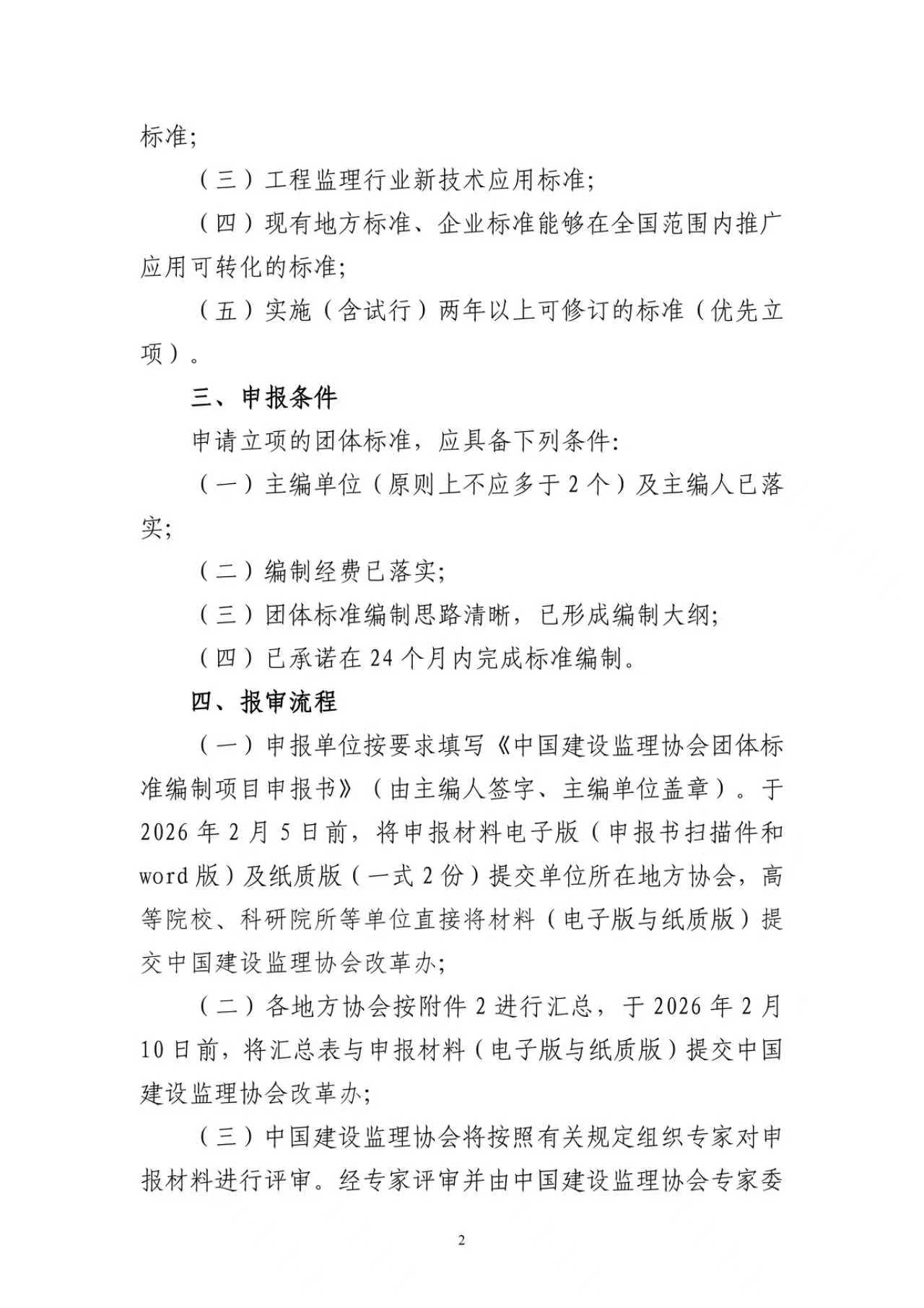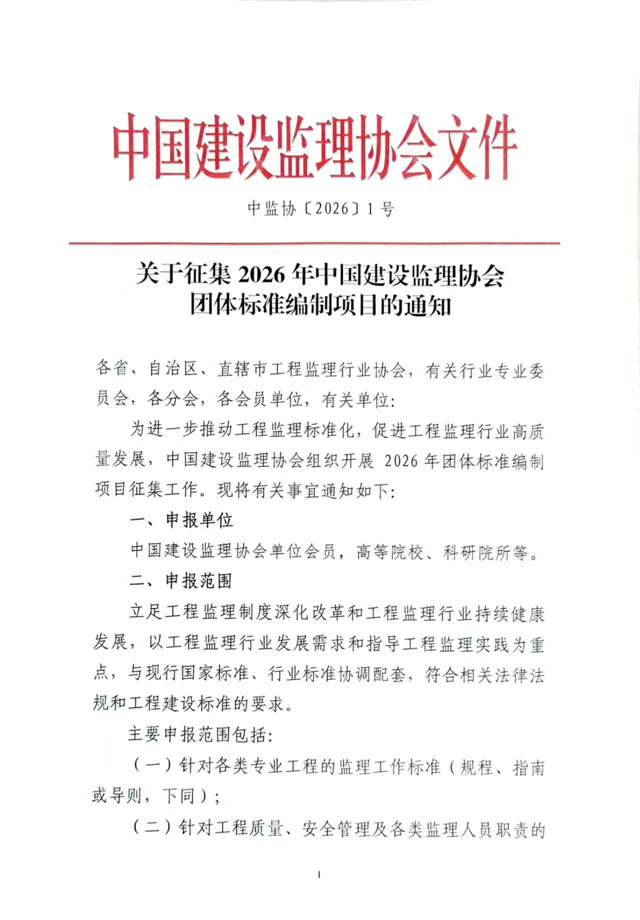 关于征集2026年中国建设监理协会团体标准编制项目的通知