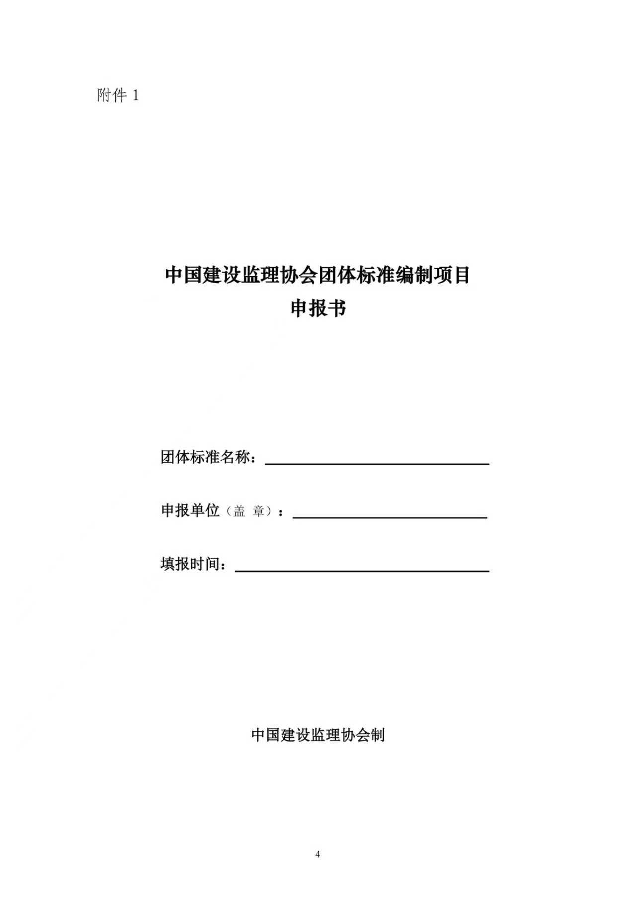 附件:1. 中国建设监理协会团体标准编制项目申报书