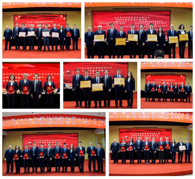 内部表彰中,经营发展部、第三分公司、第二直属监理部获评 “先进集体”;汉中市天然气投资发展有限公司 2025 年度燃气工程项目等6个深耕天然气改造、棚户区改造、地下管网、工业厂房等核心赛道的项目监理部,获评“优秀项目监理部”;宋统莉、李忠元2名同志获评“优秀党员”,首蓉同志获评“优秀党务工作者”;邢润祥等22名同志获评“先进个人”。公司领导为获奖者一一颁发奖牌与荣誉证书,致敬他们在行业凛冬中坚守初心、实干担当的精神,也激励全体员工以先进为标杆,互学互鉴、奋勇争先。