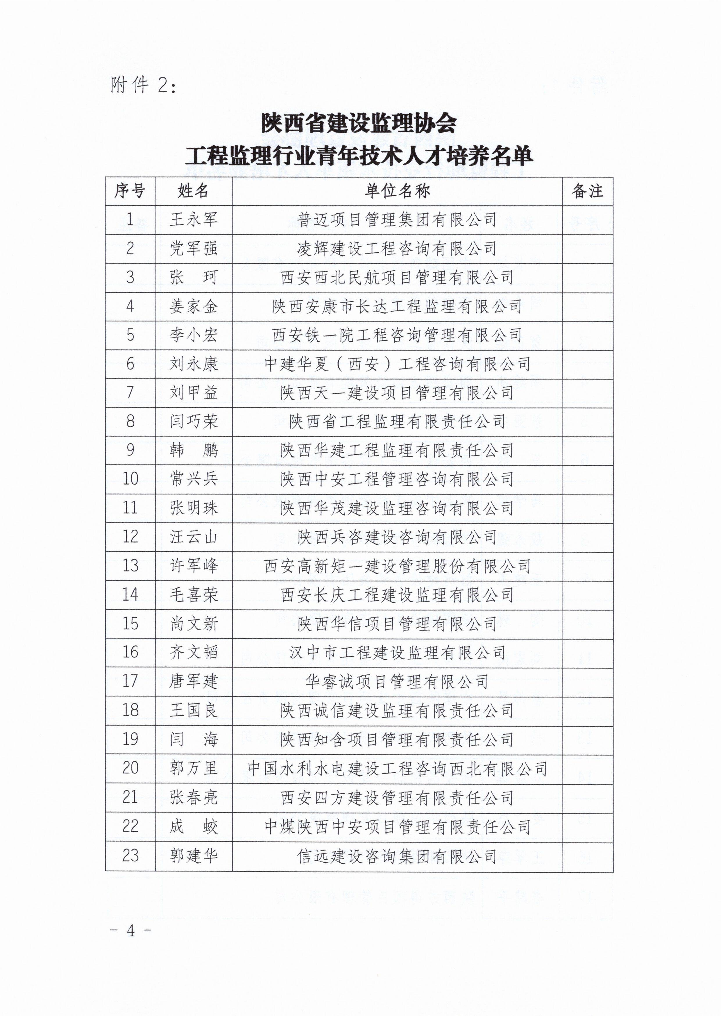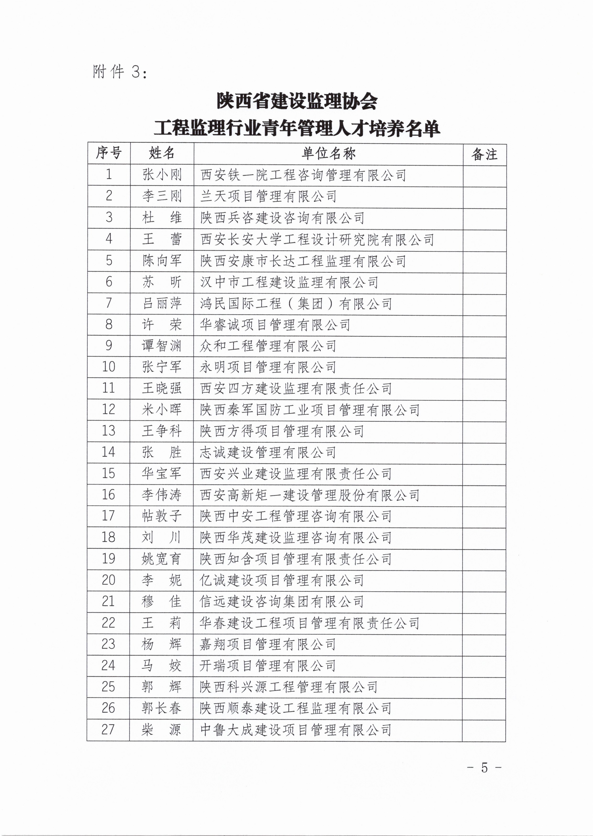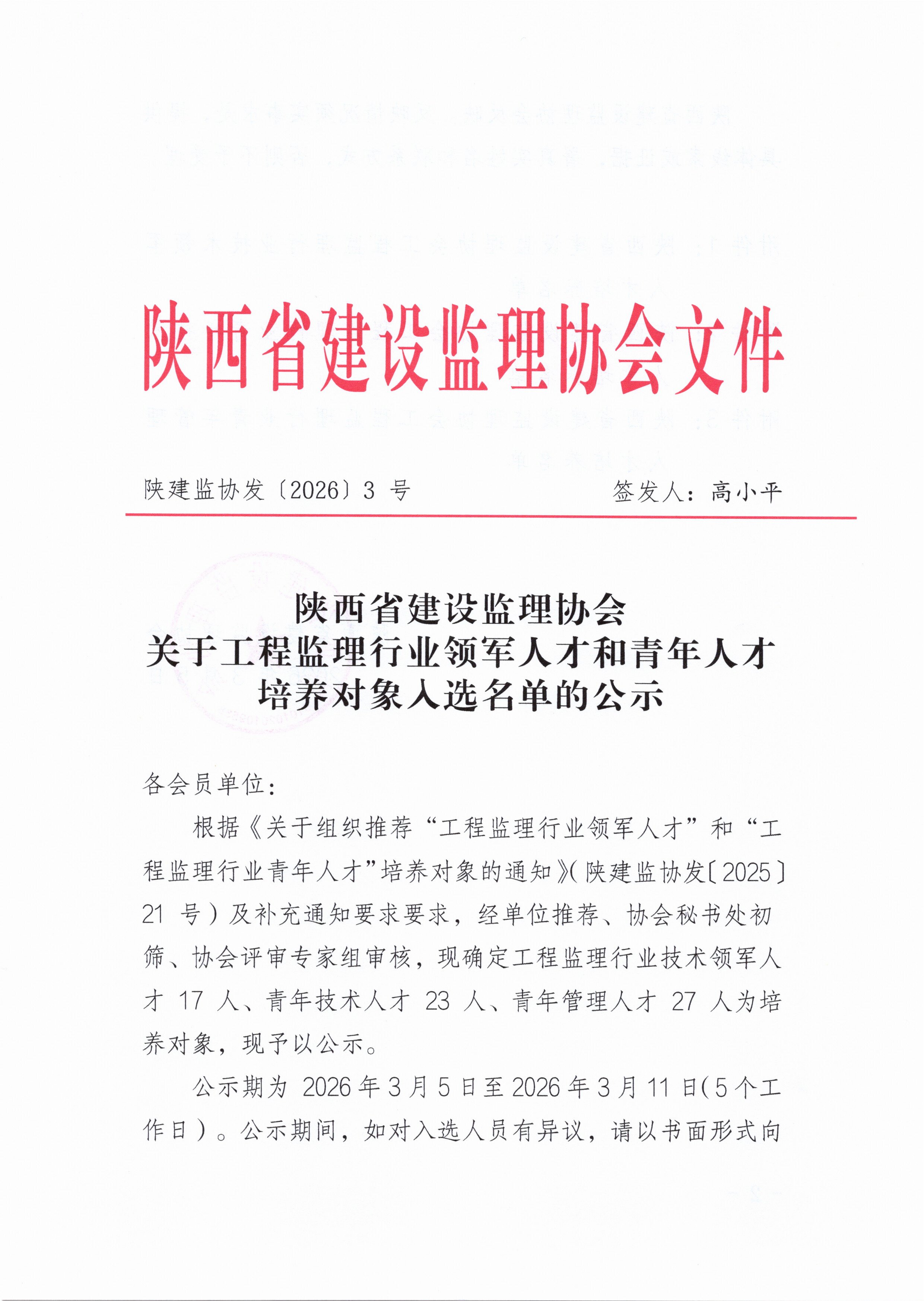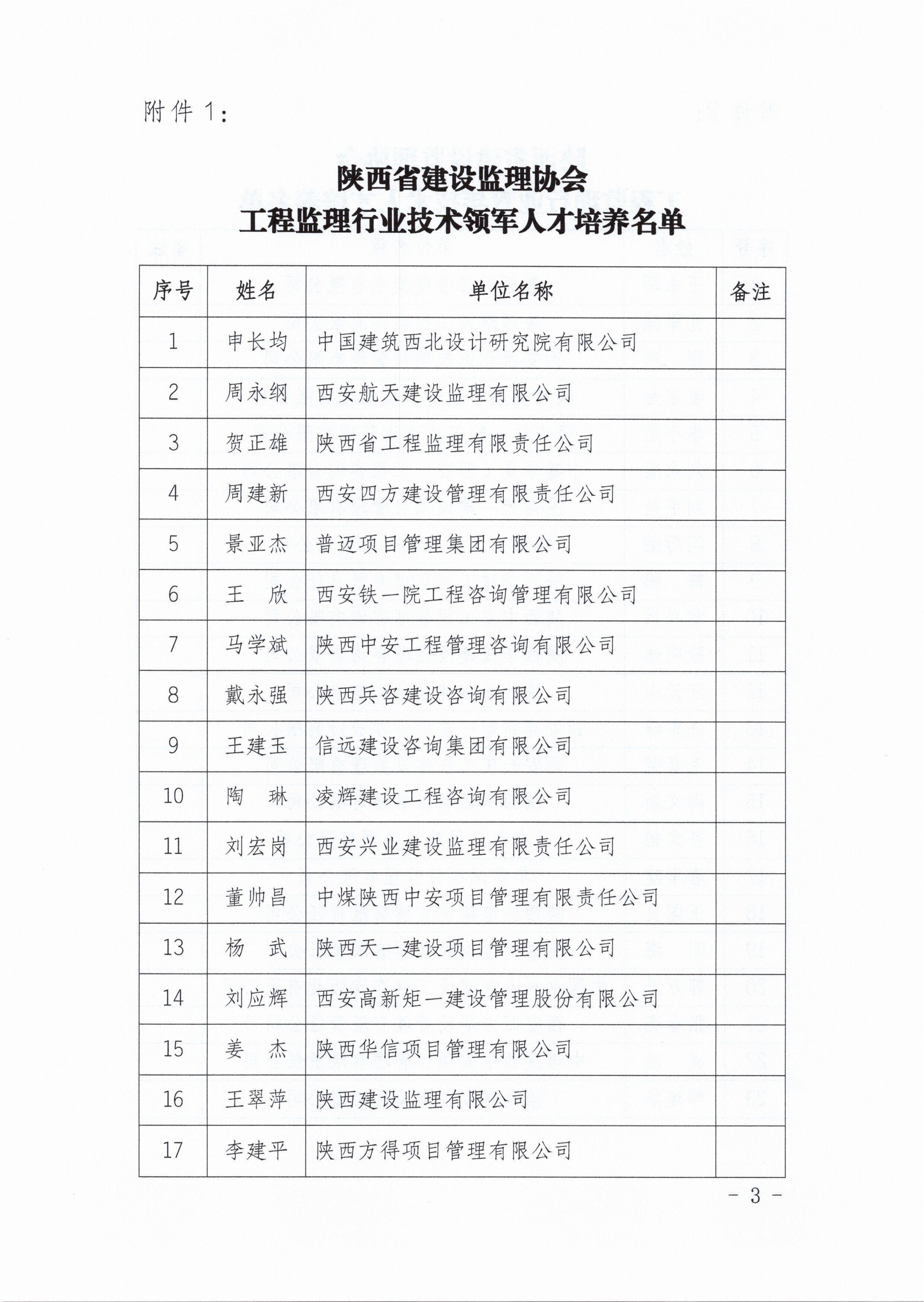 关于工程监理行业领军人才和青年人才培养对象入选名单的公示