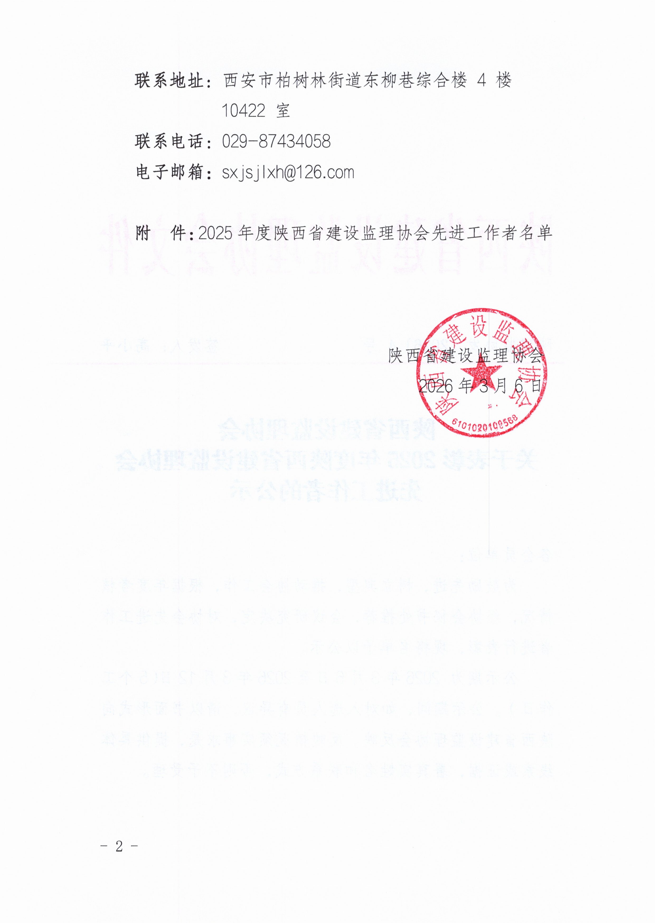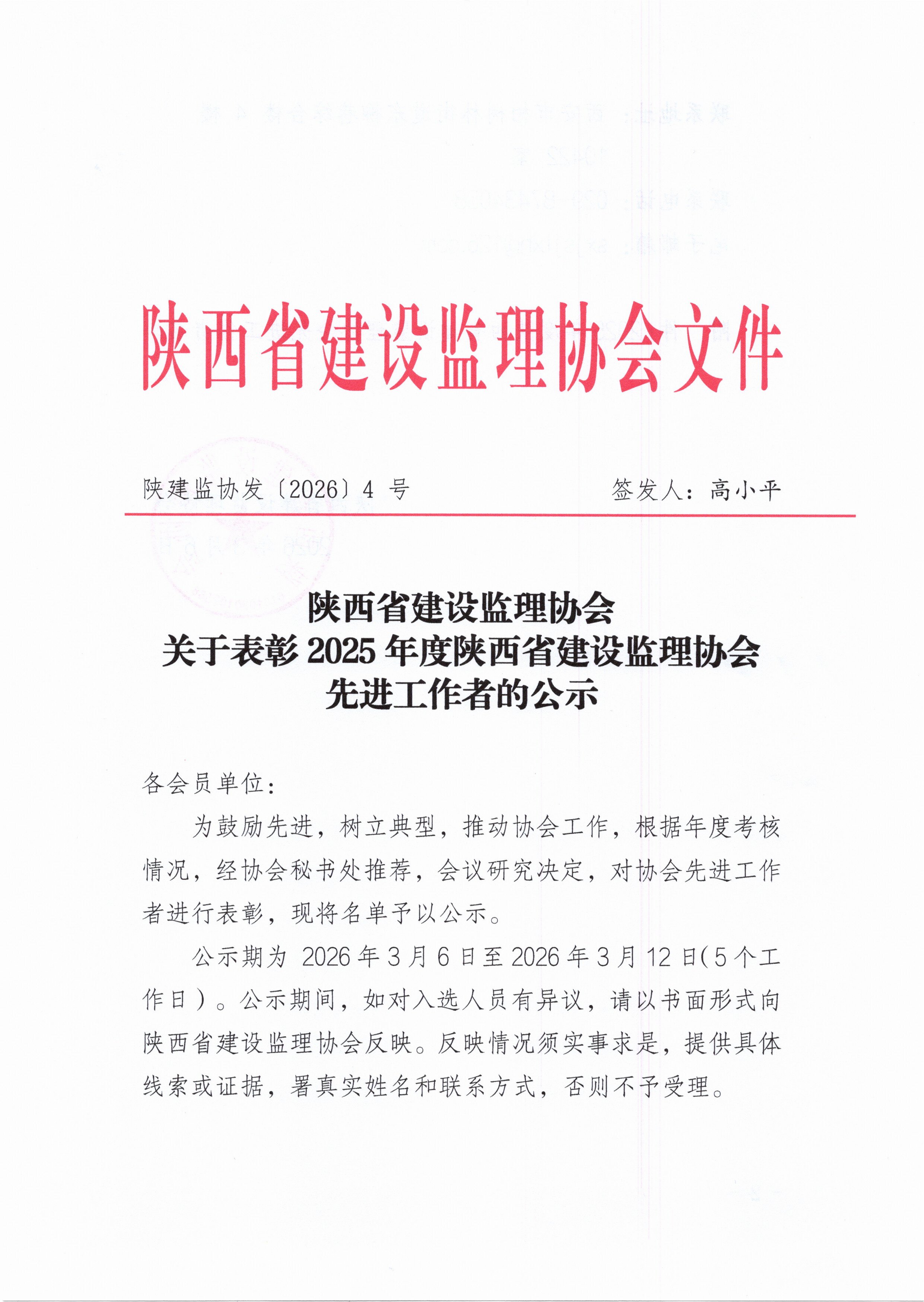 关于表彰2025年度陕西省建设监理协会先进工作者的公示