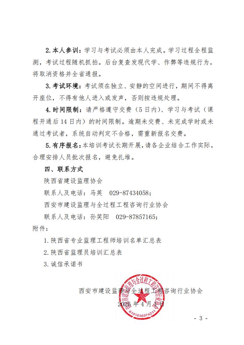 2026年度新报陕西省专业监理工程师、监理员业务将于2026年4月8日开始审核资料,请各有关单位按西安市建设监理与全过程工程咨询行业协会印发的《关于开展2026年陕西省专业监理工程师、监理员线上培训考试的通知》(文件链接:https://www.xajsjlxh.com/#/Details?id=505&categoryName=%E6%96%87%E4%BB%B6%E9%80%9A%E7%9F%A5&ccId=70)文件要求准备资料。
